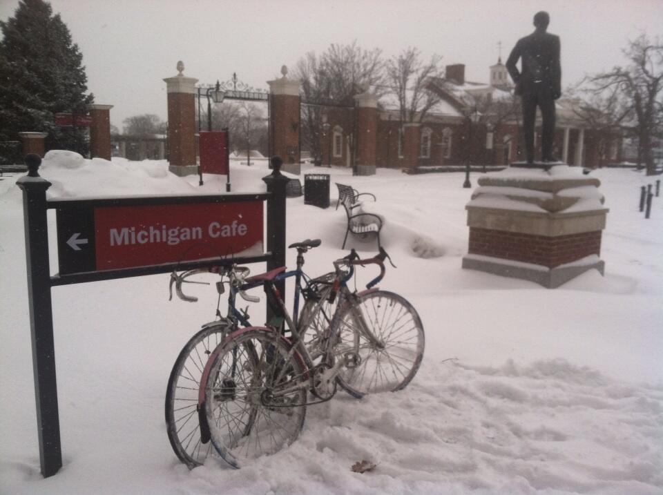 As daylight broke the energy didn’t stop. In the early afternoon Angela showed up to begin riding. Angela runs a bike program in Flint called the Berston Bicycle Club Project. Angela is originally from Detroit and wanted to come down to see what we were up to. She rode through the first of the snow in the afternoon around Belle Isle and then had to take off back to Flint. It was great to have Angela down and hopefully our groups will be riding together this summer!